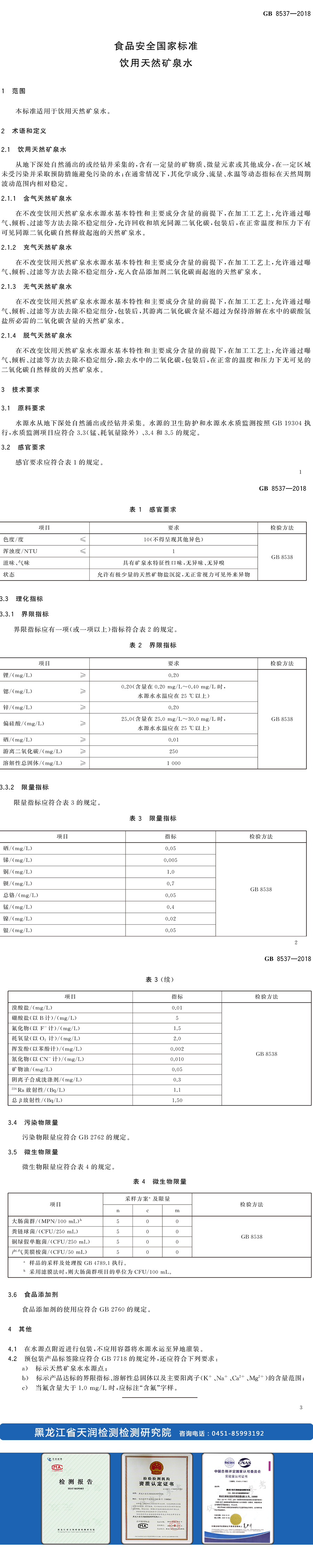 飲用天然礦泉水檢測標(biāo)準(zhǔn)